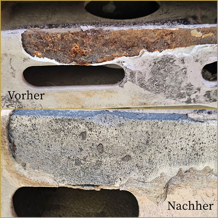Rost und Oxidationen vollständig zu beseitigen, ist mit herkömmlichen Methoden oft aufwendig und ungenau. Die Laserreinigung macht’s deutlich einfacher und präziser: Durch punktgenaue Energie wird die Rostschicht Schicht für Schicht entfernt – ganz ohne Chemie oder Schleifen. Das darunterliegende Metall bleibt unbeschädigt und ist sofort wieder einsatzbereit, ideal z.B. für stark beanspruchte Bauteile wie Abgaskrümmer oder Maschinenkomponenten.
